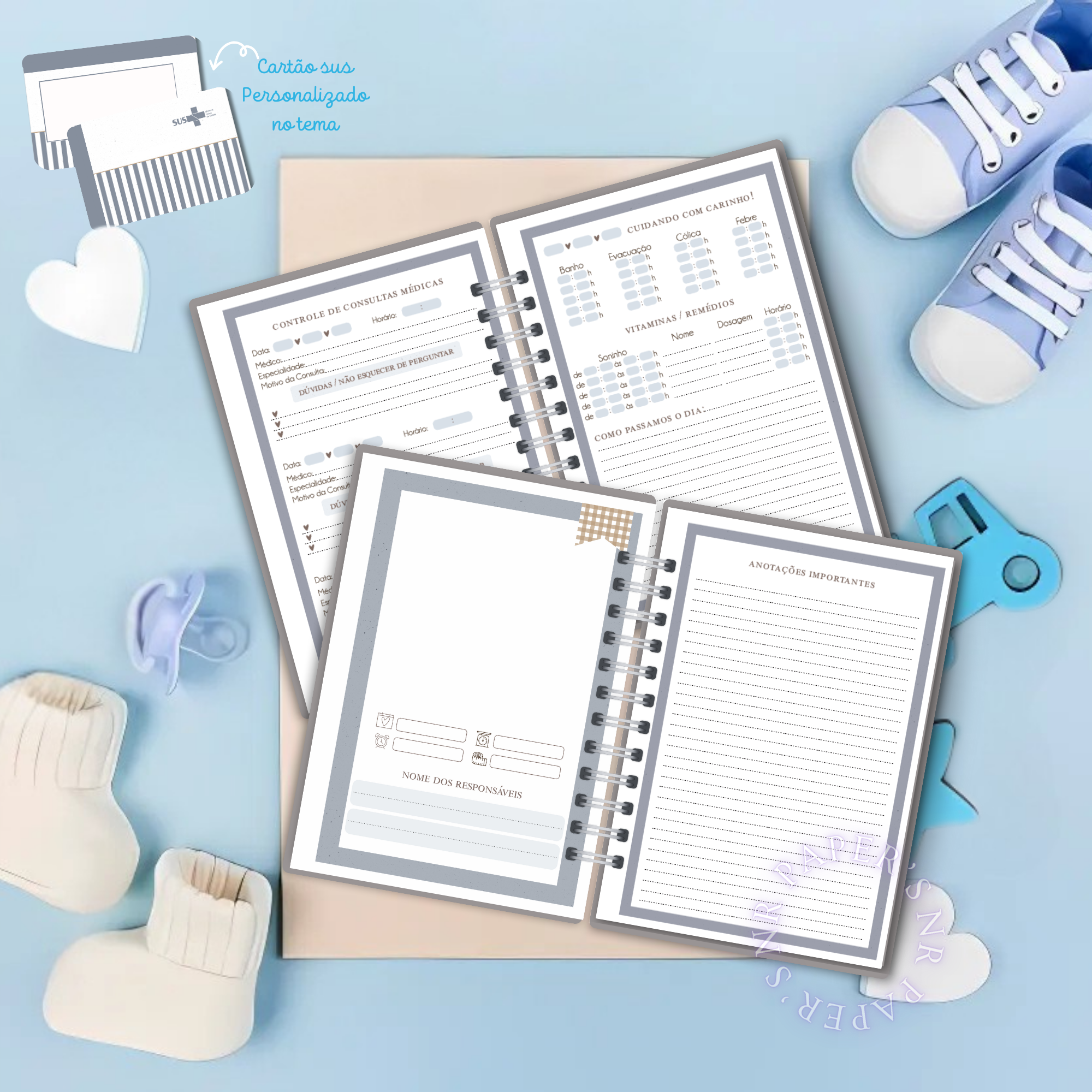 Com capa dura personalizada no tema escolhido, acabamento premium e extras exclusivos, essa caderneta vai além do simples livrinho de vacinas — é um verdadeiro organizador da saúde.