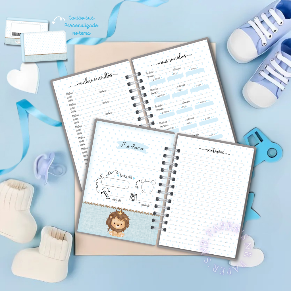Com capa dura personalizada no tema escolhido, acabamento premium e extras exclusivos, essa caderneta vai além do simples livrinho de vacinas — é um verdadeiro organizador da saúde.