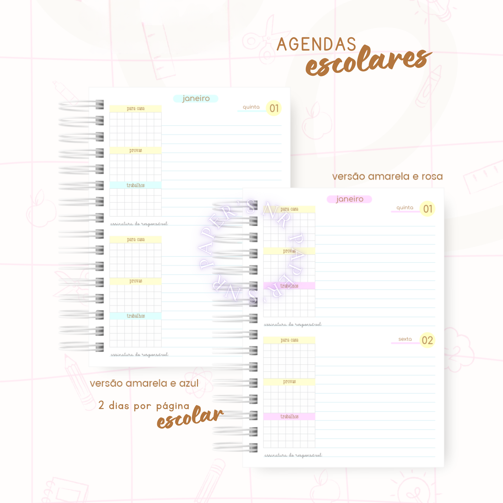 • 210 páginas na versão Escolar – 2 dias por página (105 folhas)