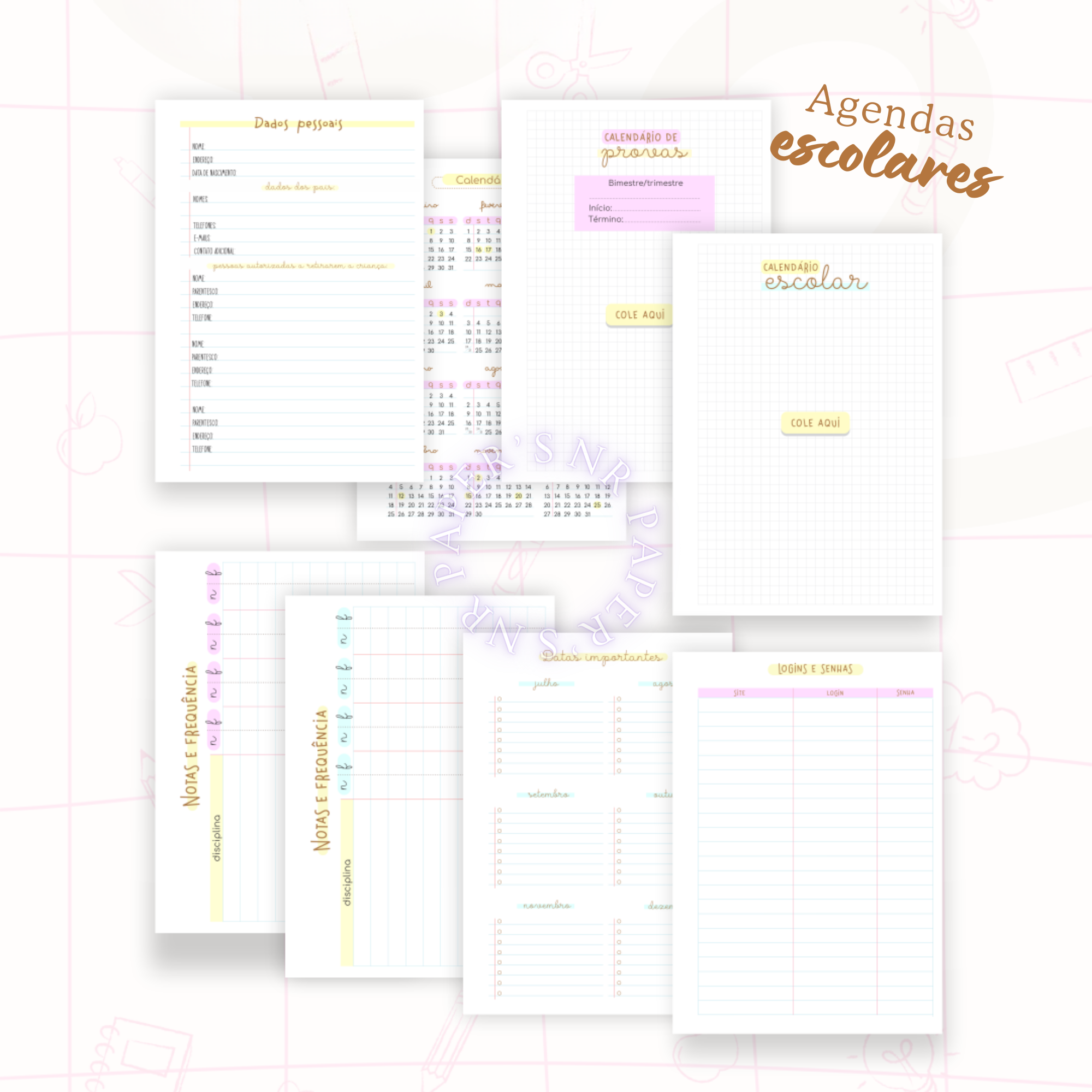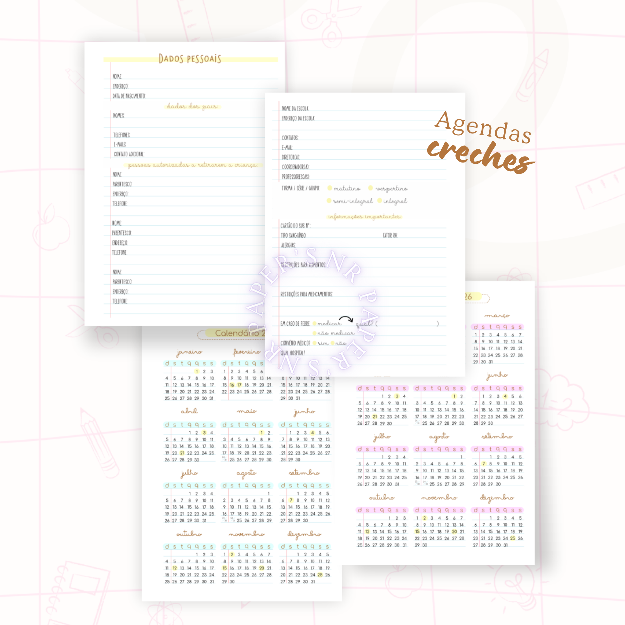 Creche, Escolar – 1 dia por Página, Escolar – 2 dias por Página
