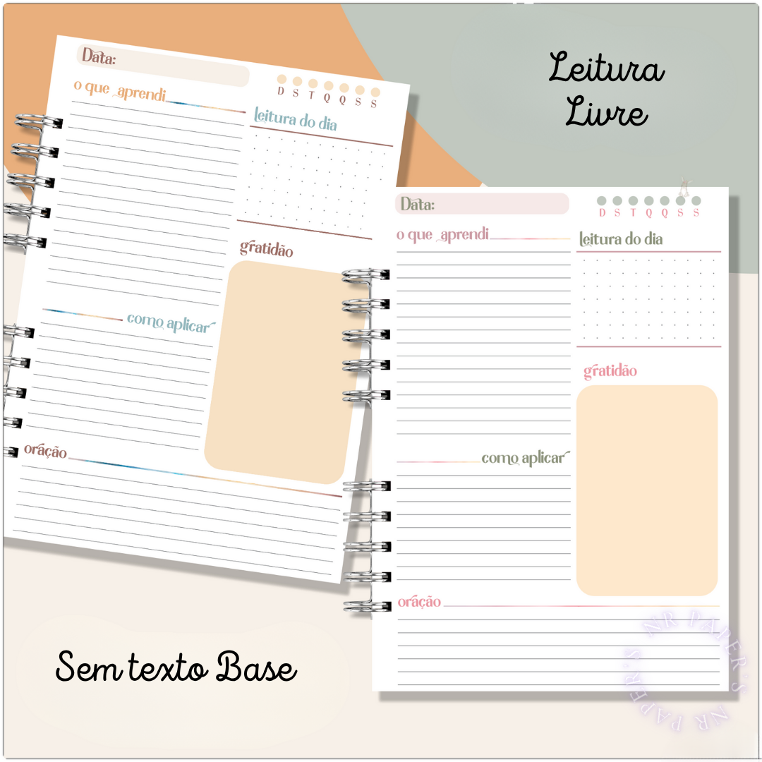Miolo livre para orações, estudos e reflexões;