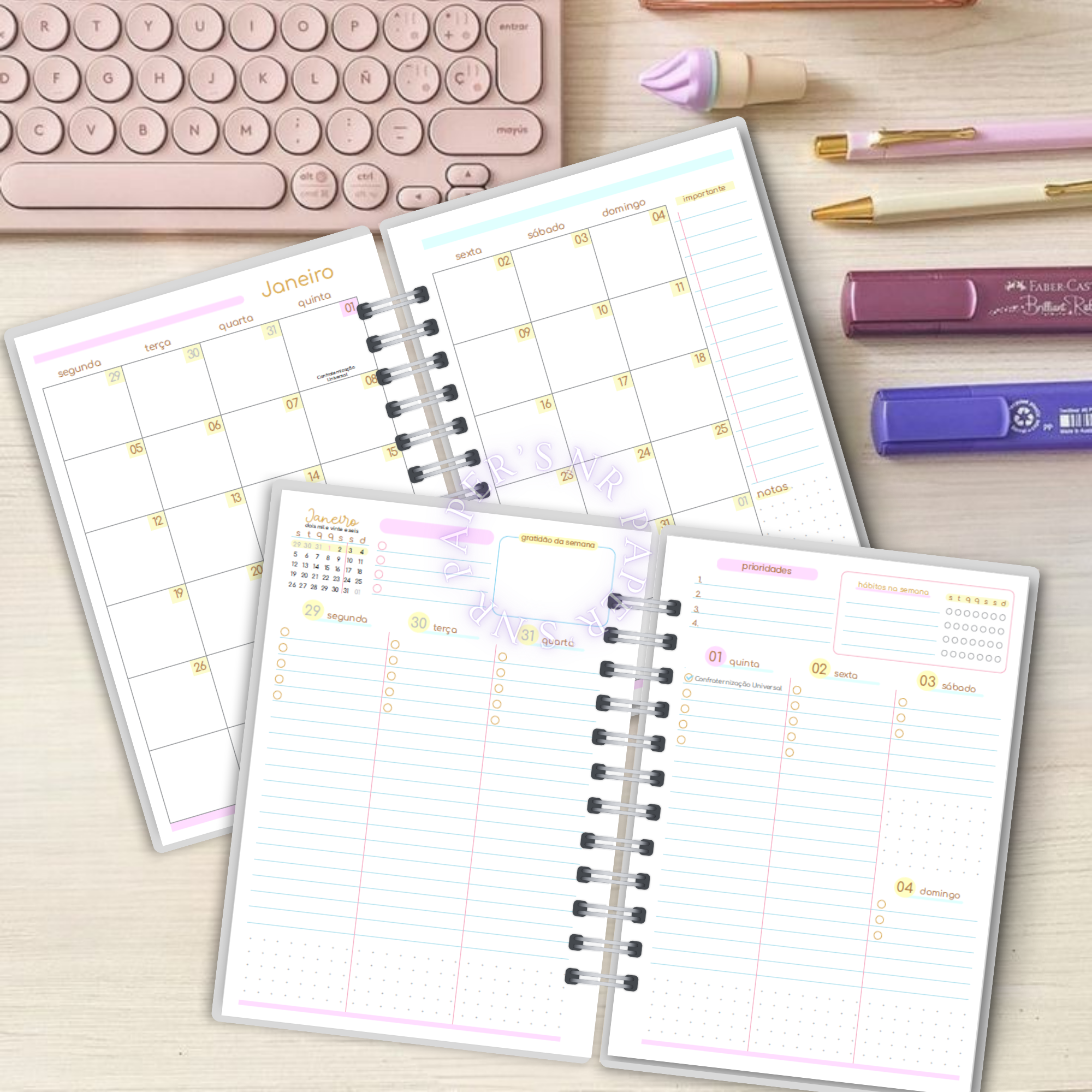 Com espaço para: Prioridades – Hábitos – Gratidão - Financeiro Mensal
